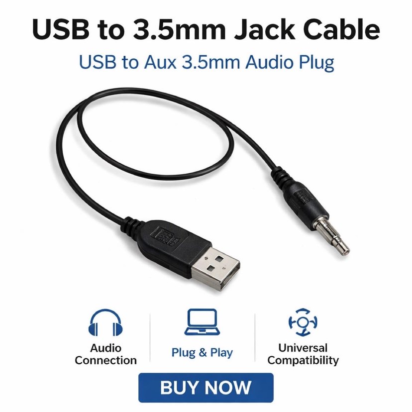 USB'den 3.5mm sese siyah kablo, evrensel uyumluluk ve tak-çalıştır özellikleri ile kolay bağlantı sağlar.