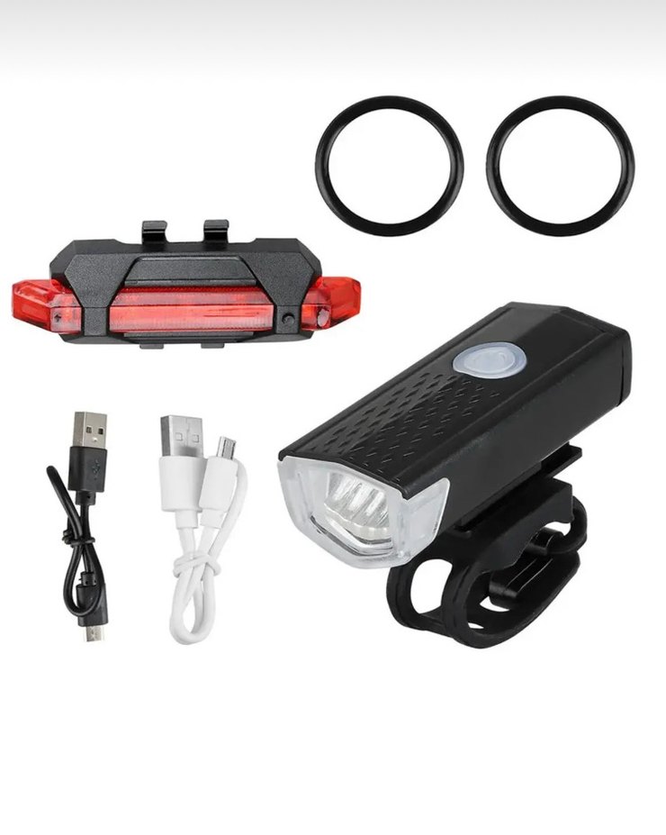 USB Şarjlı Siyah Bisiklet Ön ve Arka Işık Seti