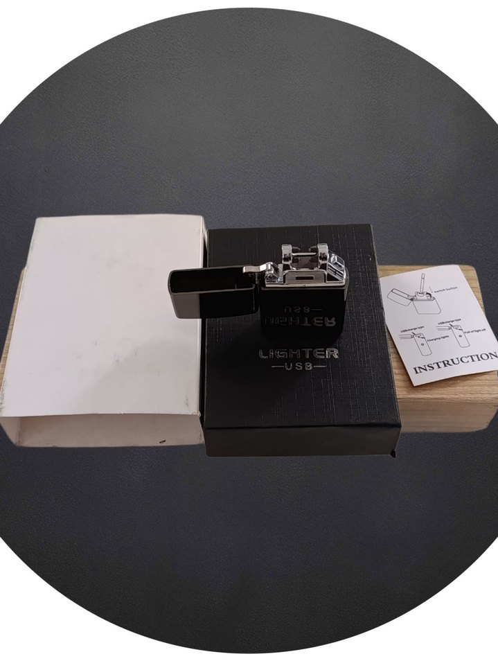 Kompakt tasarımlı siyah USB şarjlı elektronik çakmak, kullanım talimatları ile birlikte verilir. Kolay kullanımlı ve doldurulabilir. ⚡