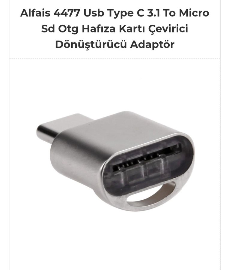 Alfais 4477 adaptör, Type-C Usb C 3.1 Micro Sd Kart Okuyucu Type-C girişli cep telefonu tablet ve bilgisayarlarınızda kullanabilirsiniz. Type-c Soketinden takılarak Micro SD / TF kart okuyuabilir yazabilir veri aktarımı yapabilir. Küçük yapısı ile taşıması kolaydır.