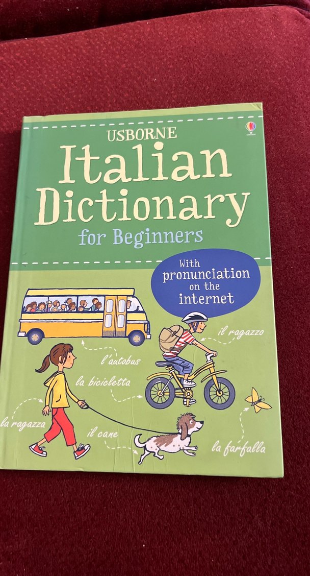 Usborne başlangıç seviyesi İtalyanca sözlük, internet üzerinden telaffuz rehberi içerir. Basit çizimler ve temel kelimelerle öğrenmeyi destekler.