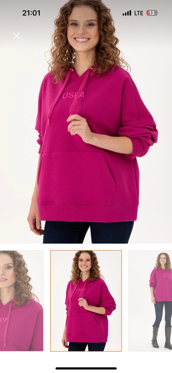 Polo pembe kadın sweatshirt, yuvarlak yaka ve uzun kolludur. Rahat kesim, yumuşak ve sıcak kumaş ile günlük kullanıma uygundur. Ön cep ve zarif marka detayı vardır
