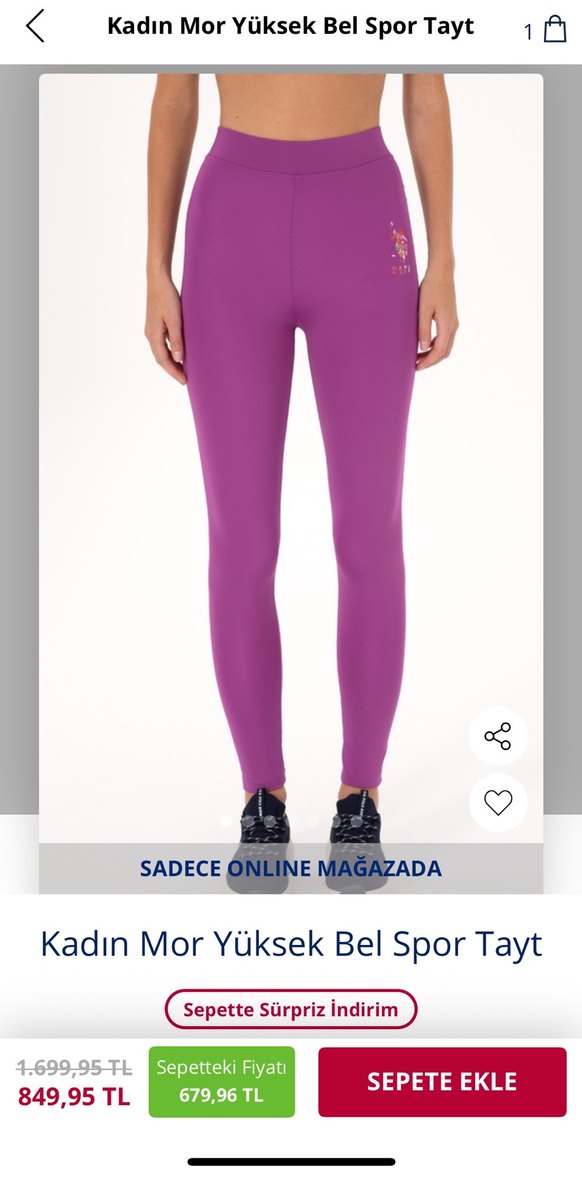 USP ASSN Mor Yüksek Bel Spor Tayt Kadın