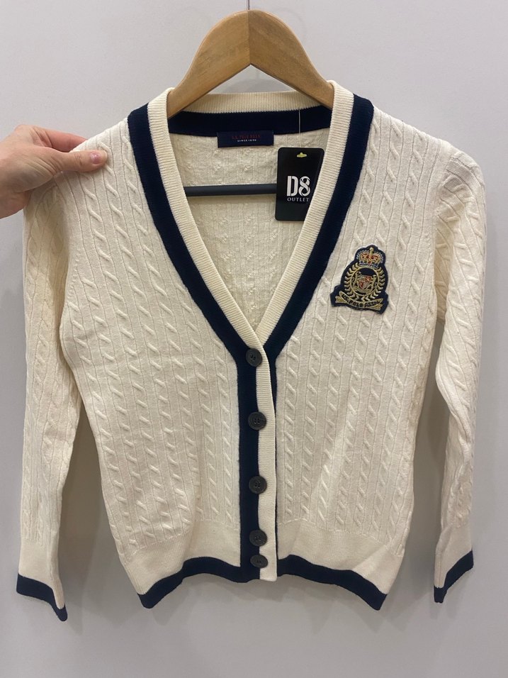 #uspoloassn markalı sayılı temiz kullanımlı sorunsuz ve yeni durumdadır. Ekru lacivert tonlu yarı kumaş yün , yarı kumaş akrilik içerikli kışlık erkek çocuk hırka. İç orjinallik etiketleri ve yedek iç düğmesi mevcut olup resimlerde görebilirsiniz. Beden/yaş bilgisi yazmıyor kalıp ve mezura ölçülerine göre tahminim 7-8 ya da 8-9 yaş çocuklara uygun geleceği görüşündeyim. Detaylı metre ölçülerini ekledim kullanacak beden için cm leri kıyaslayınız. 8 yaş seçilmiştir.