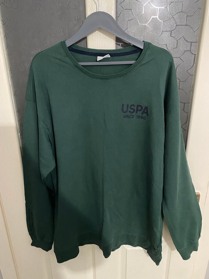Uzun kollu, yuvarlak yakalı ve bol kesimli bu koyu yeşil erkek sweatshirtü, yumuşak ve sıcak bir kumaştan üretilmiştir. Göğsünde "USPA" logosu bulunur. Trendy rahat stil için uygundur.