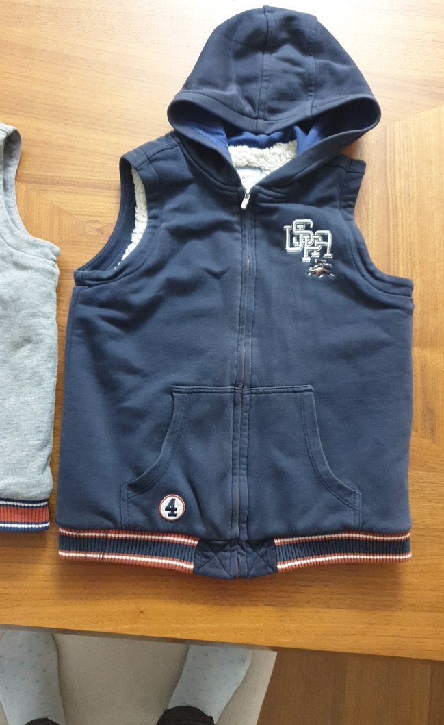 Erkekler için kolsuz, fermuarlı ve kapüşonlu gri yelek. eskitme lacivert. Hiç deformasyonu yoktur. aynısının griside var.