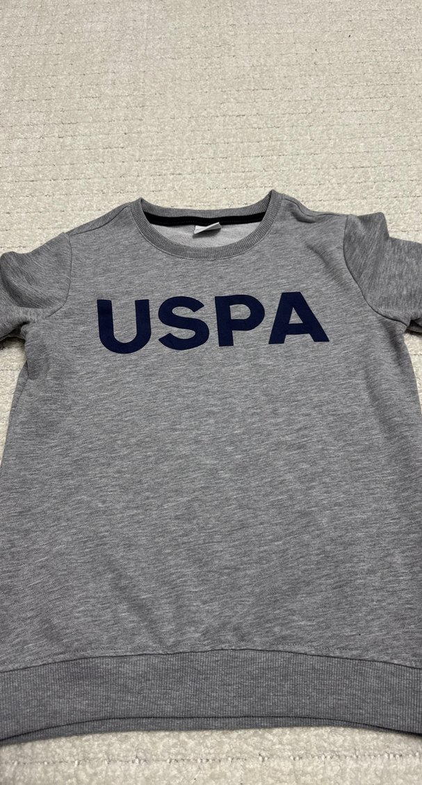 Gri renkli, uzun kollu, yuvarlak yakalı erkek sweatshirt. USPA baskılı, bol kesim ve yumuşak, sıcak kumaştan üretilmiştir. Rahat sokak stili için uygundur.