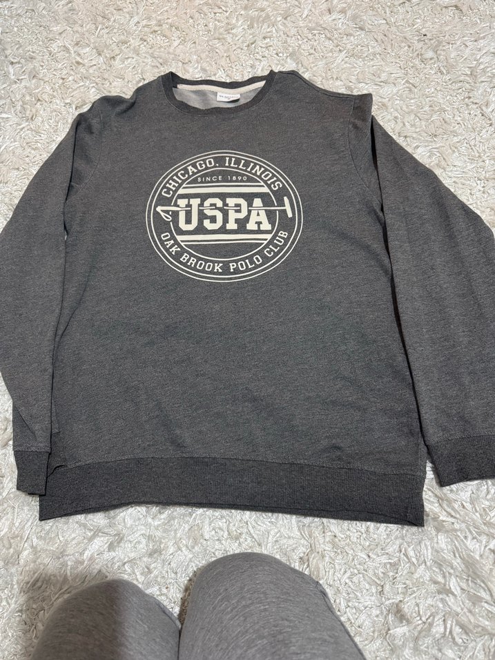 Gri renkte, yuvarlak yakalı ve uzun kollu USPA sweatshirt. Yumuşak kumaştan ve bol kesim, baskılı tasarıma sahip, günlük sokak stili için uygun.