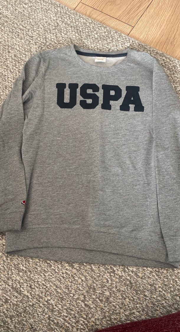 Gri renkli USPA sweatshirt, uzun kollu ve yuvarlak yakalıdır. Rahat kesimi ve yumuşak dokusuyla günlük sokak stiline uygundur.