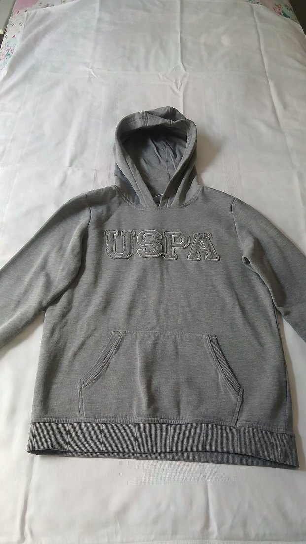 Gri renkli, uzun kollu ve yuvarlak yakalı sweatshirt. Yumuşak ve sıcak kumaştan, bol kesim ve önünde "USPA" yazısı ile sade tasarım. Önden cep bulunur.