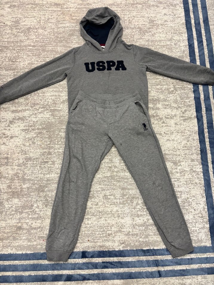 USPA Gri Kapüşonlu Sweatshirt ve Eşofman
