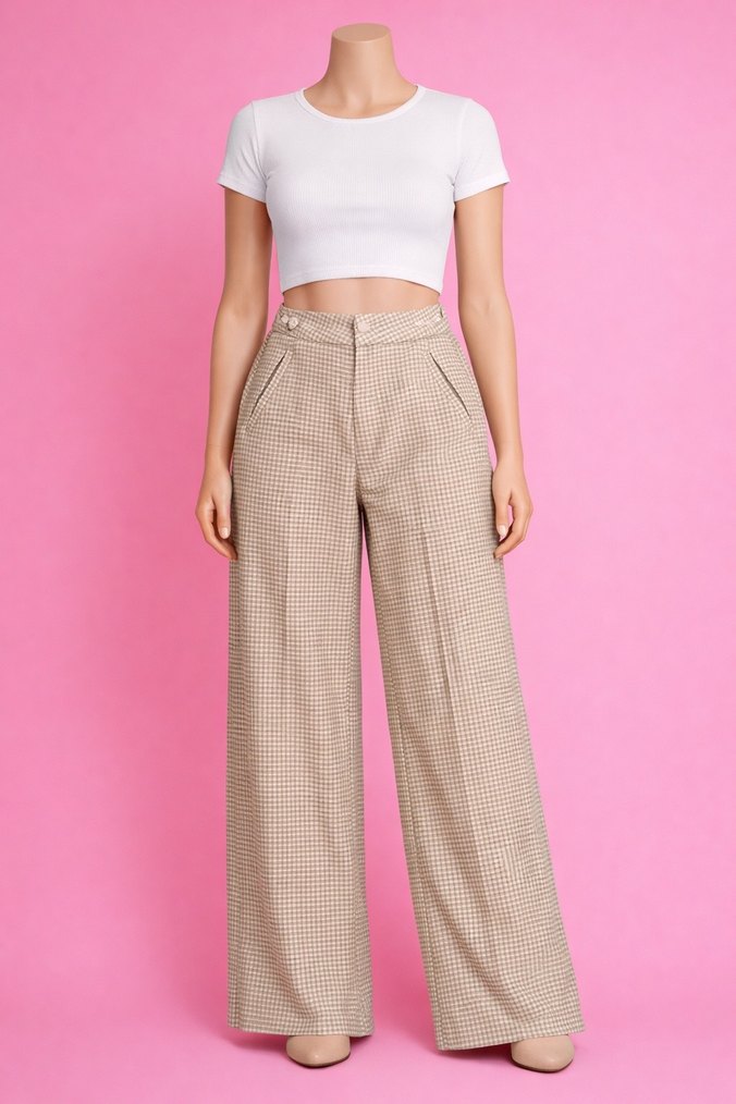 uspa Kadın Bej kareli kaşe pantolon