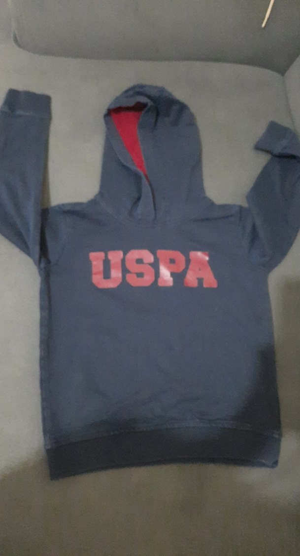 kapüşonlu, uzun kollu ve vücuda oturan kesime sahip USPA baskılı, erkek çocuk sweatshirtü.