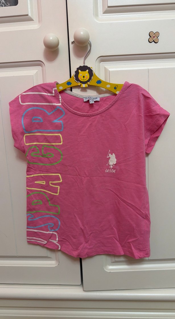 USPA Kız Çocuk Pembe Baskılı Kısa Kollu Tişört