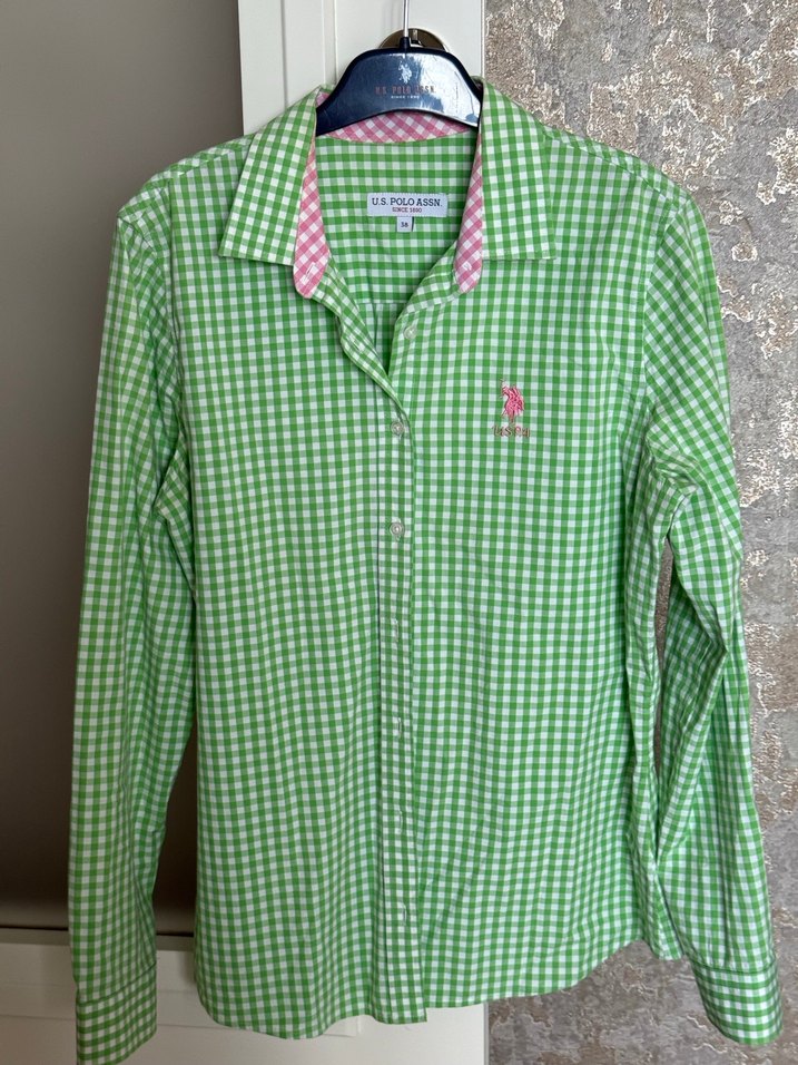 Orjinal marka ekose pamuklu bir üründür.Kol iç manşet ve yaka detayları pembe renktedir.Kol altı genişliği 48 cm omuzdan boyu 64.cm dir.Rengi yeşildir.