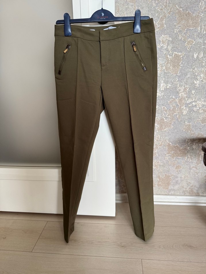 Haki renkli önden fermuarlı kapalı ceptir.Bel yüksekliği normaldir.Hafif likralı bir modeldir.Beli 38 cm boyu90 cm paça genişliği 15 cmdir.