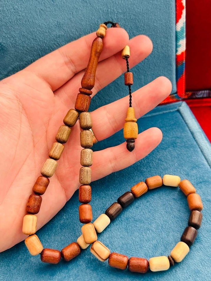 USTA İŞİ KAPSÜL KESİM KARMA AĞAÇ TESBİH KULLANILAN AĞAÇLAR: SAKIZ-ARDIÇ-ERİK-CEVİZ-KEÇİBOYNUZU-PORTAKAL-ABANOZ-SEDİR-KAN AĞAÇLARI USTA İŞİ TAKIMLI SİSTEMLİ TANE EBADI: 8*12 MM İMAME BOY: 5.1 CM TOPLAM BOY: 37 CM Ürünlerimiz doğal olduğu için renk tonlarında küçük farklılıklar olabilir.