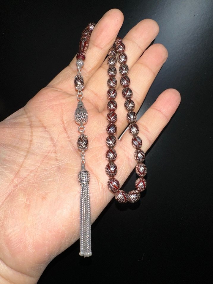 Usta imzalı 925 ayar gümüş çakımlı 925 ayar gümüş püsküllü 7/9 ölçü mükemmel bir kuka tesbih alana hayırlı uğurluolsun5335499970