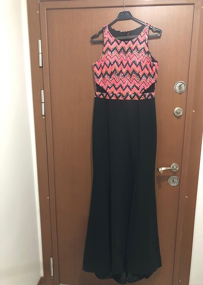 Üstü pullu renkli altı siyah balık elbise. İki kere giyildi.
