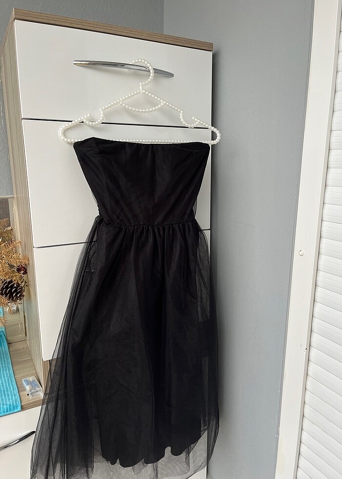 Üstü straplez midi boy tül elbise