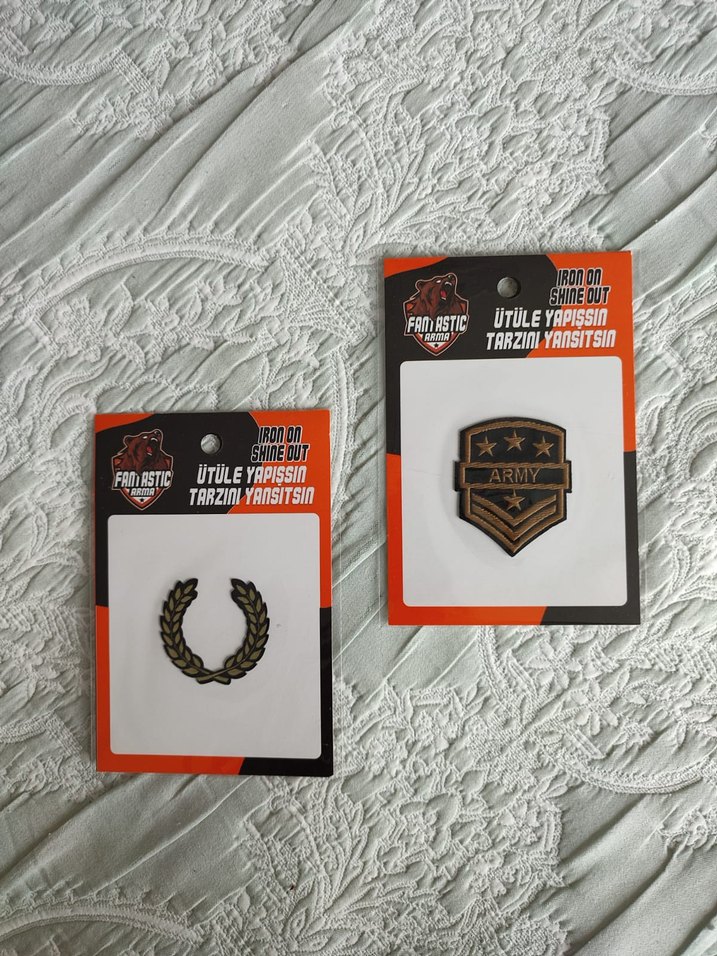 Parlak altın renkli, ütüyle yapışan biker rozetleri. Askeri ve defne dalı desenleriyle minimalist ve eski tarzı yansıtıyor. ️