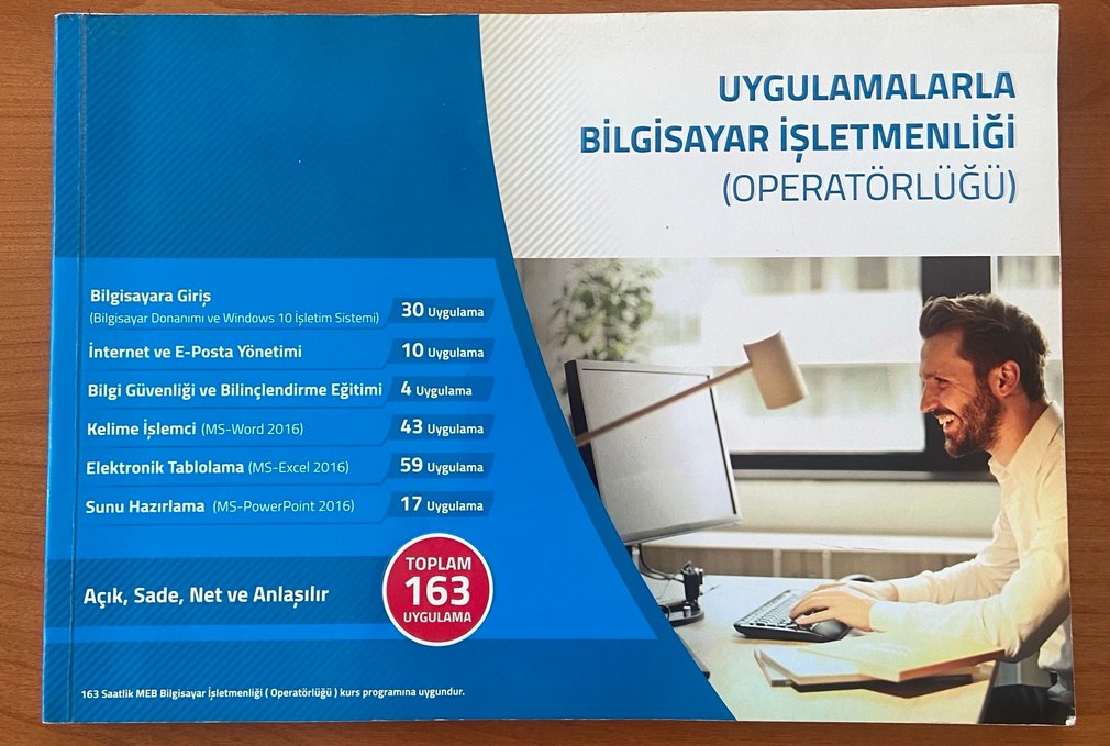 Toplam 163 uygulama içeren kitap; işletim sistemi, kelime işlem, bilgisayar eğitimi, Excel 2016 ve PowerPoint 2016 konularını kapsar. Laboratuvar kurs programına uygundur.