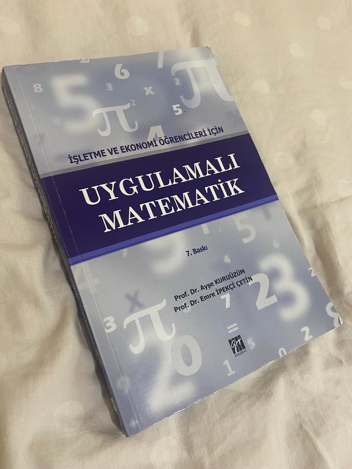 İşletme ve ekonomi öğrencileri için hazırlanmış, Prof. Dr. Ayşe Kurtoğlu ve Prof. Dr. Emre İpekçi Çetin'in yazdığı Uygulamalı Matematik kitabı, 7. baskıdır. Aldığım notlar dışında hiçbir sorunu yoktur ve kullanıma engel degildir.✨