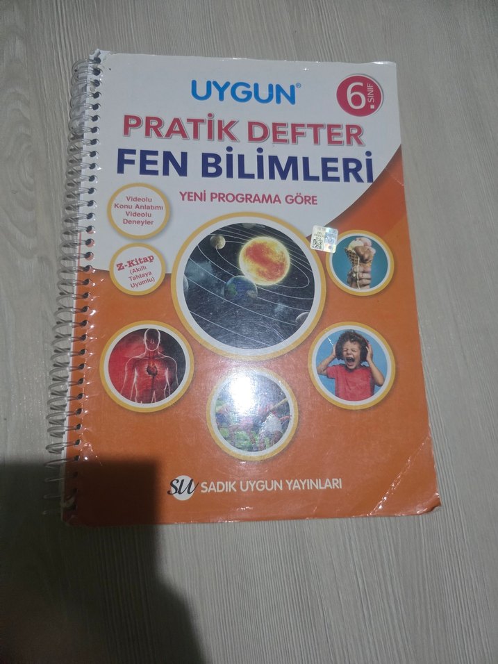 Uygun Pratik Defter Fen Bilimleri 6. sınıf için yeni programa göre hazırlanmış, video anlatım ve deneyler içerir. bir iki sayfa yaıldı kurşun kalem silinebilir.