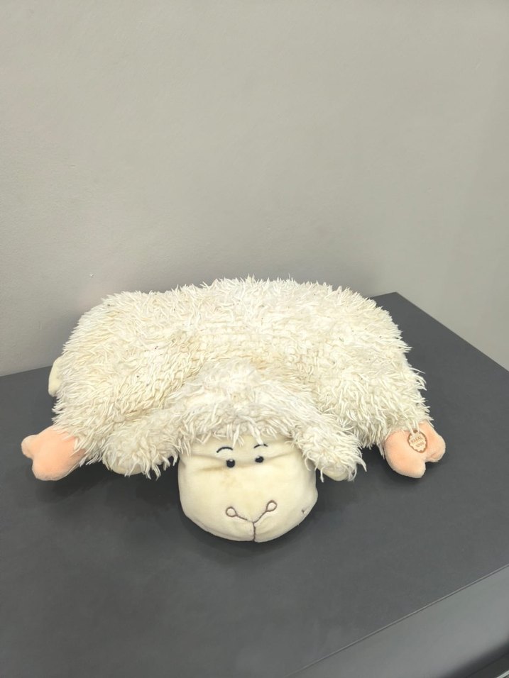 Yumuşak beyaz peluş kuzu oyuncak, pastel tonlarda, sarılmak ve dekorasyon için uygun.temassizlik var masal falan ninni söylüyordu
