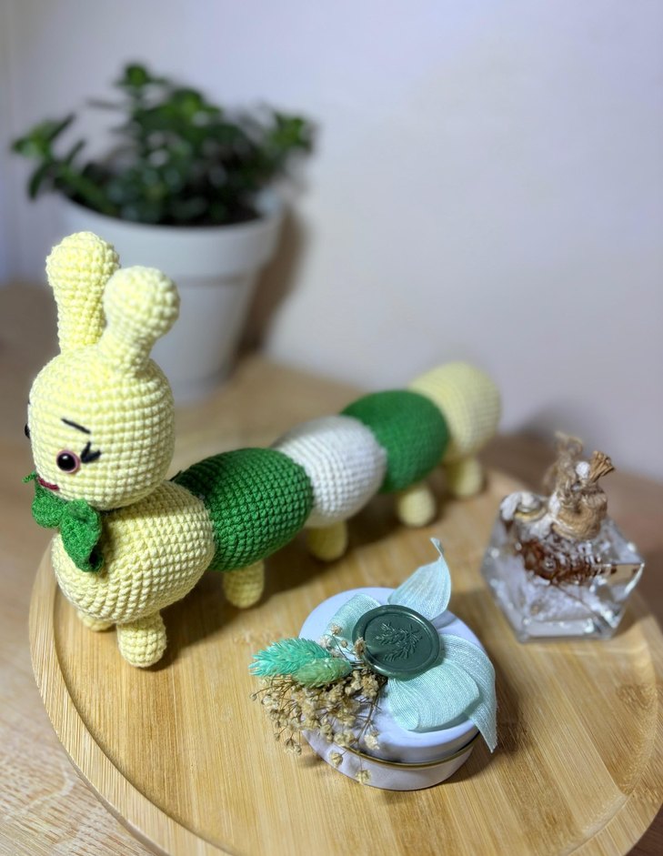 amigurumi el örgüsü sevimli tırtıl alize ipinden örülmüştür boncuk elyafla dolduruldu çamaşır makinesinde yılanıyor bozulma olmuyor allerjik çocuklar içinde uygundur çocuklar çok severek oynuyorlar
