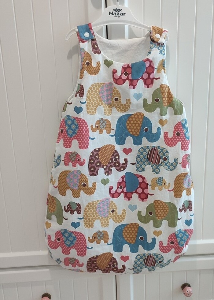 0-12 ay uyku tulumu. Çok az kullandım. Omuz kısmında çıtçıt ve yan kısımda fermuarı vardır. Son fotoda gösterdiğim kısım harici hiçbir deformasyonu yoktur. Geldiğinde altında minicik bir sökük vardı,elimde diktim.