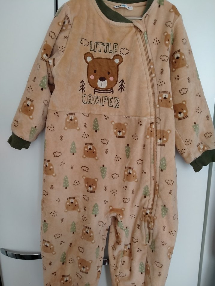 kadife uyku tulumu. Çocuğum giymek istemediği için satıyorum. cok az kullanıldı. minik bi söküğü var. 83 cm