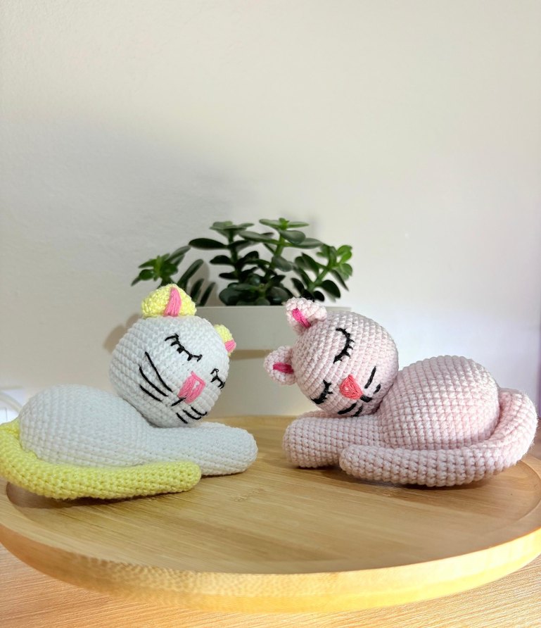amigurumi el örgüsü uyuyan sevimli kedicikler alize ipinden örüldü boncuk elyaf koyuldu çamaşır makinesinde yıkanabilir birşey olmuyor allerjik çocuklar içinde uygundur