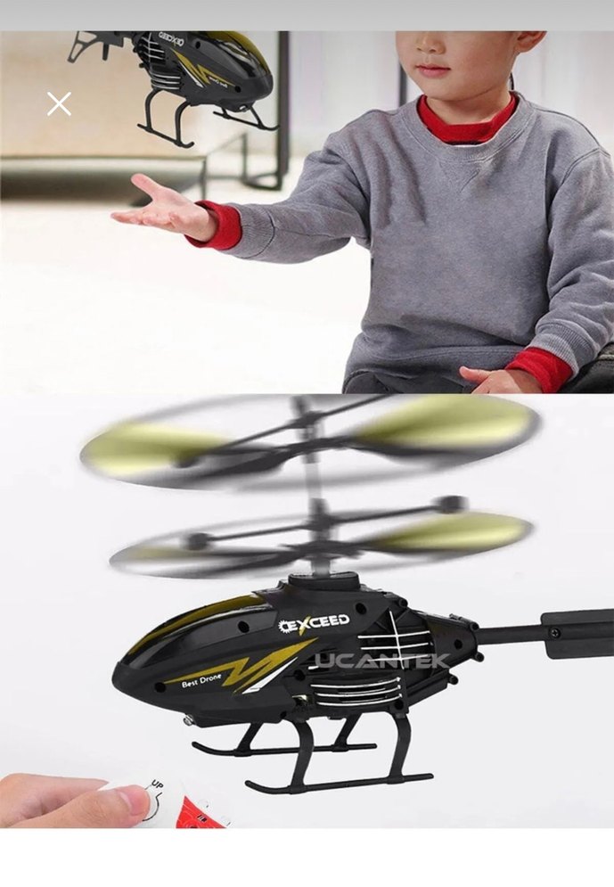 uzaktan kumandalı helikopter oyuncak. El hareketleri ve kumanda ile kontrol edilebilir, iç mekan oyunları için uygundur.