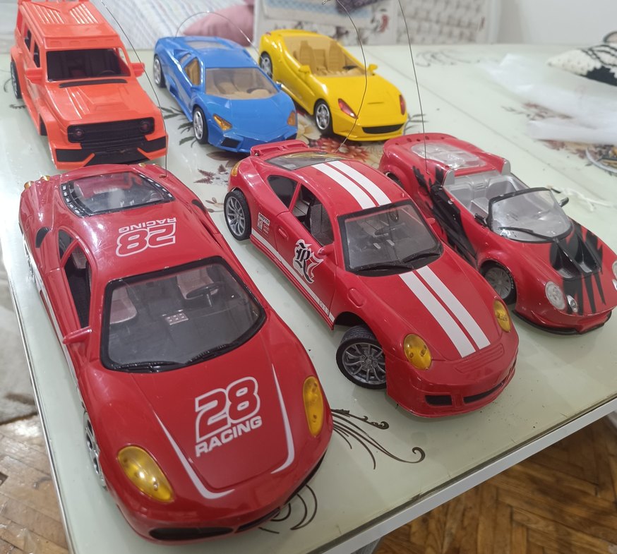 toplu satılıktır kumanda ve pilleri yok kırmızı sarı Ferrari mavi Lamborghini ve turuncu jeep çalışmaktadır üstü açık ve kapalı porsche'ler çalışmıyor fiyatları uygun yazıyorum