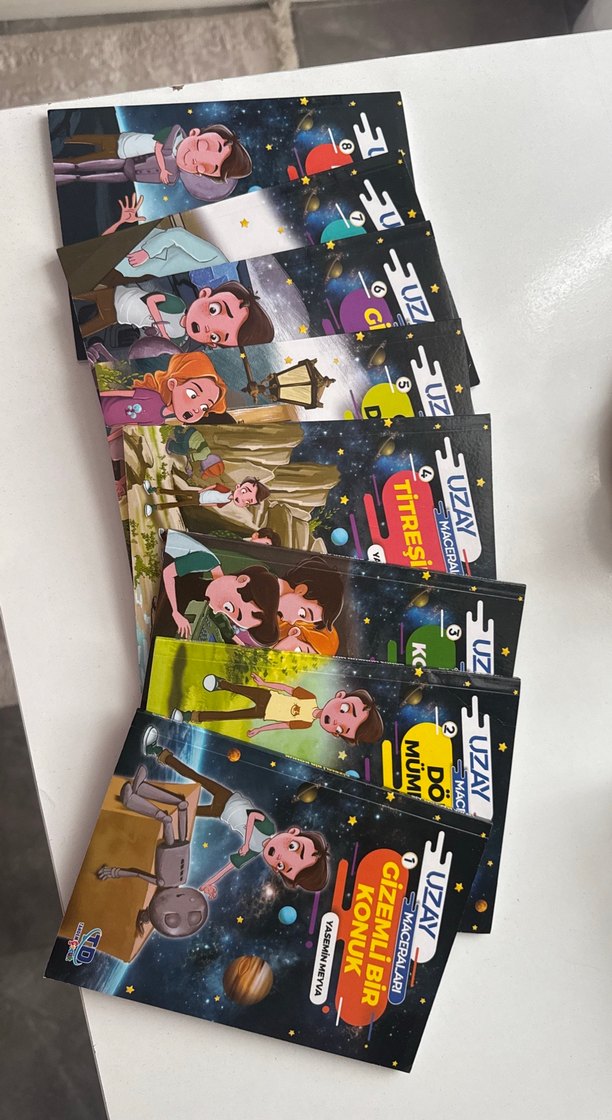 Uzay temalı, renkli resimli ve eğlenceli karakterlere sahip çocuk kitapları serisi. Uzay meraklıları için uygun.