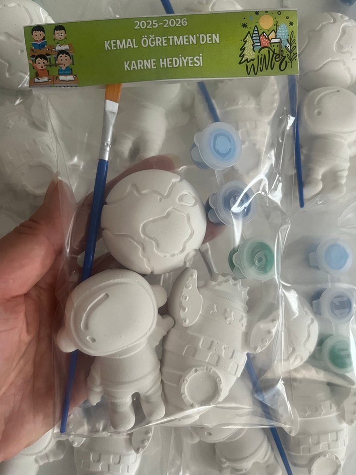 Uzay temalı objeler , 1 fırçalar ve 3 renk boya içeren setimiz 2025-2026 karne hediyesi olarak çocuklar için hazır ☺️