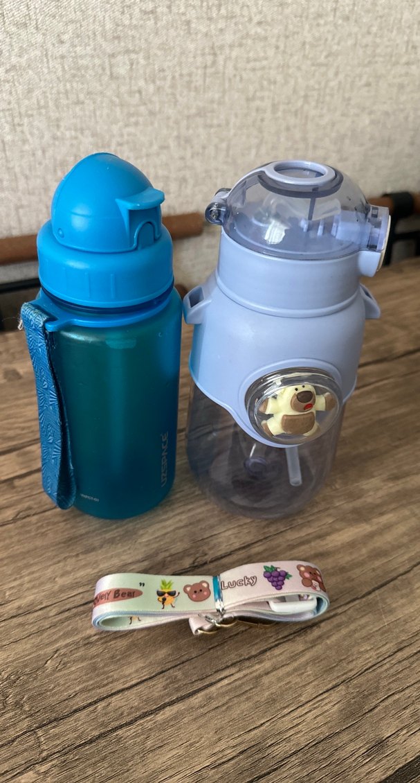 Uzpace 400 ml suluk Mavi ve gri renklerde, taşıması kolay kapaklı çocuk termosları. Sevimli hayvan desenli kayışlarla birlikte gelir.