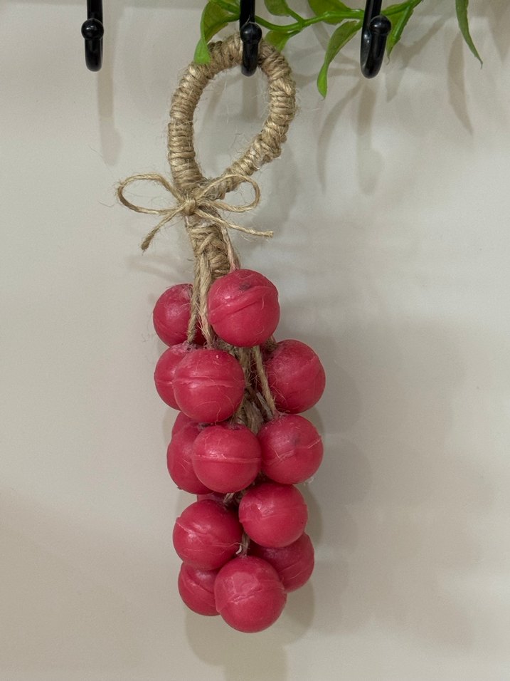 Doğal ip ile bağlanmış, üzüm salkımı şeklinde kırmızı sabun. Hem dekoratif hem kullanışlıdır.