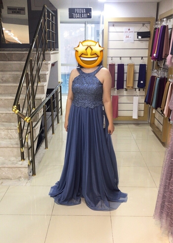 Mavi renk uzun tül abiye nişanımda giydim sadece bedeni 3 numara