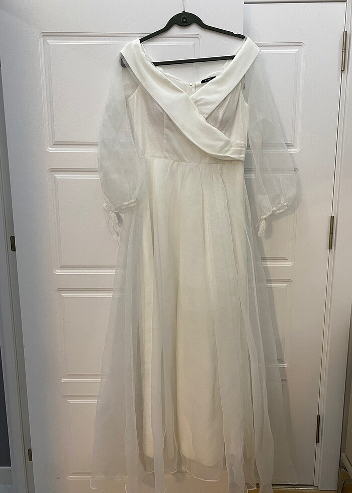 Sadece bir kere nikahımda giydim kolları transparan hafif yırtmacı var uzun çok şık abiye