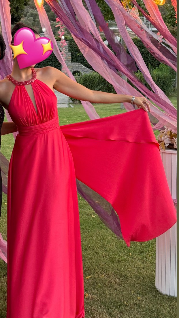 Nar çiçeği tonunda, drapeli İnce kesimi ve parlak dokusuyla düğünler için uygun, kolsuz ve rahat. bir gece düğünde giydim. 8000 tl ye almıştım. Almayı düşünen için daha çok fotoğraf vs yükleyebilirim