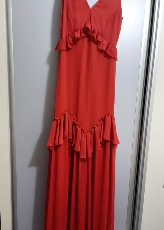 Düğün iptal olunca kaldı başka da fırsatım olmadı giymeye hiç kullanılmamıstır rengi kırmızı değil kiremit rengidir