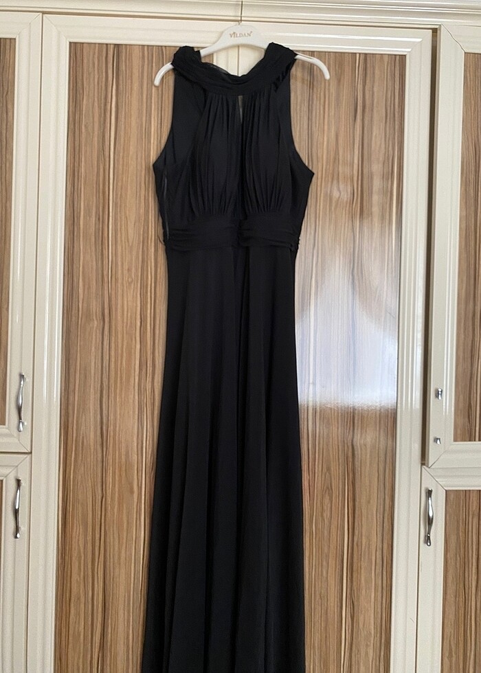 Siyah göğüs kısmı oturan belden bollaşan yırtmaçlı abiye elbise 38-40beden