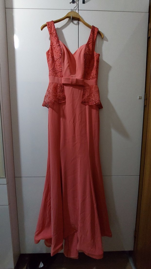 nar cicegi rengi uzun abiye elbise bir kere giyildi defo yok teklif kabul etmiyorum hesapta farklı elbiseler de mevcuttur