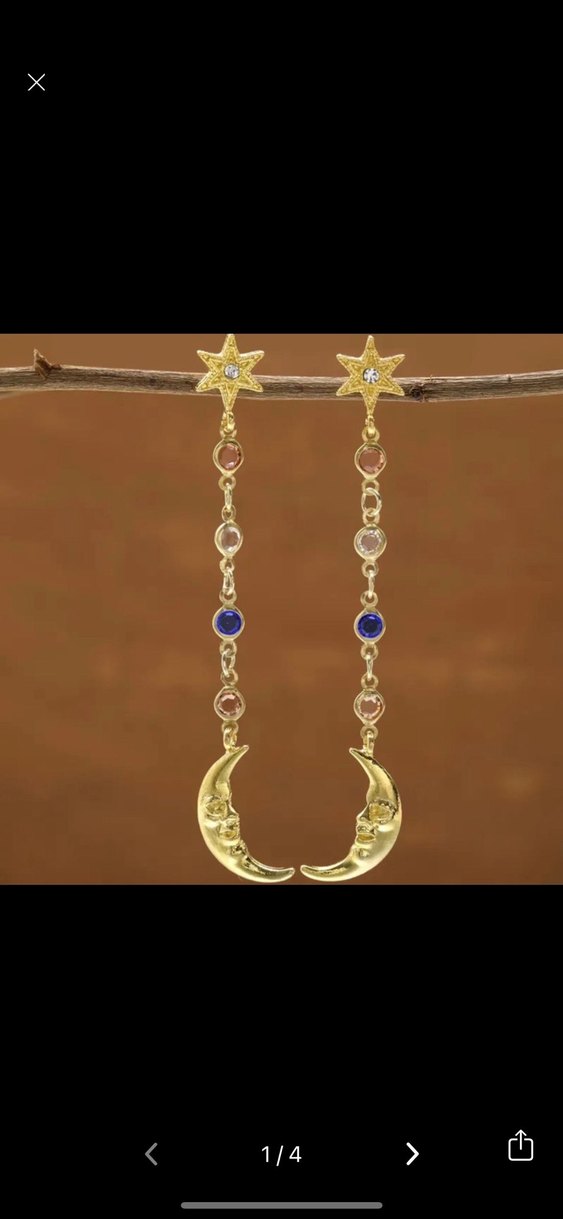 Uzun uzun boncuklu zincirler, yıldız ve ay figürlü altın küpeler, romantik akşamlar için uygun. ✨