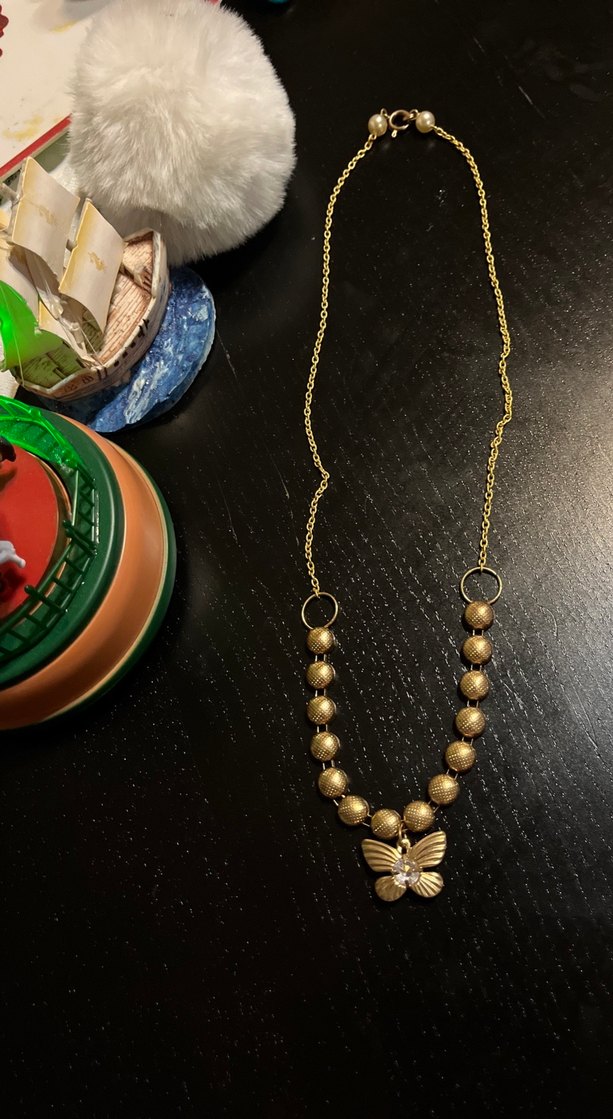 Uzun Altın Boncuklu Kelebek Kolye