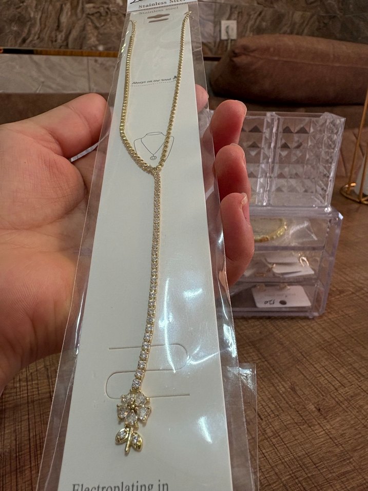 Altın renk ucu çiçek detaylı Y kolye