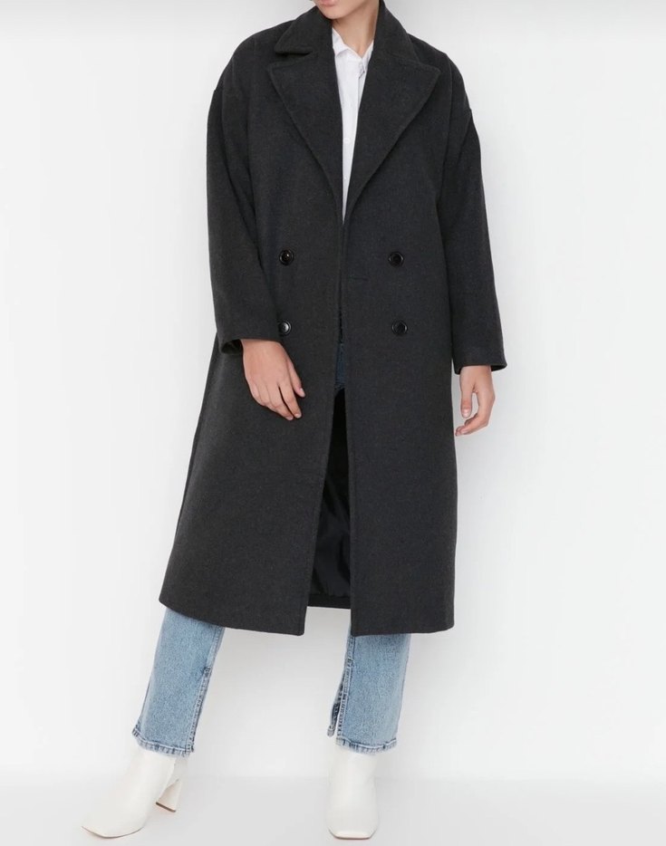 Uzun antrasit renkli kaban. Birkaç kez giydim.