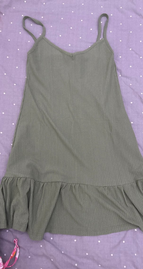 V yaka, kolsuz elbise, fırfır detaylı etek ucu ile rahat kesime sahiptir. Yumuşak sentetik kumaştan üretilmiş bohem tarzda, günlük kullanım için uygundur. Minik bir ip kaçması var xs yazıyor ama m bedene kadar uyar